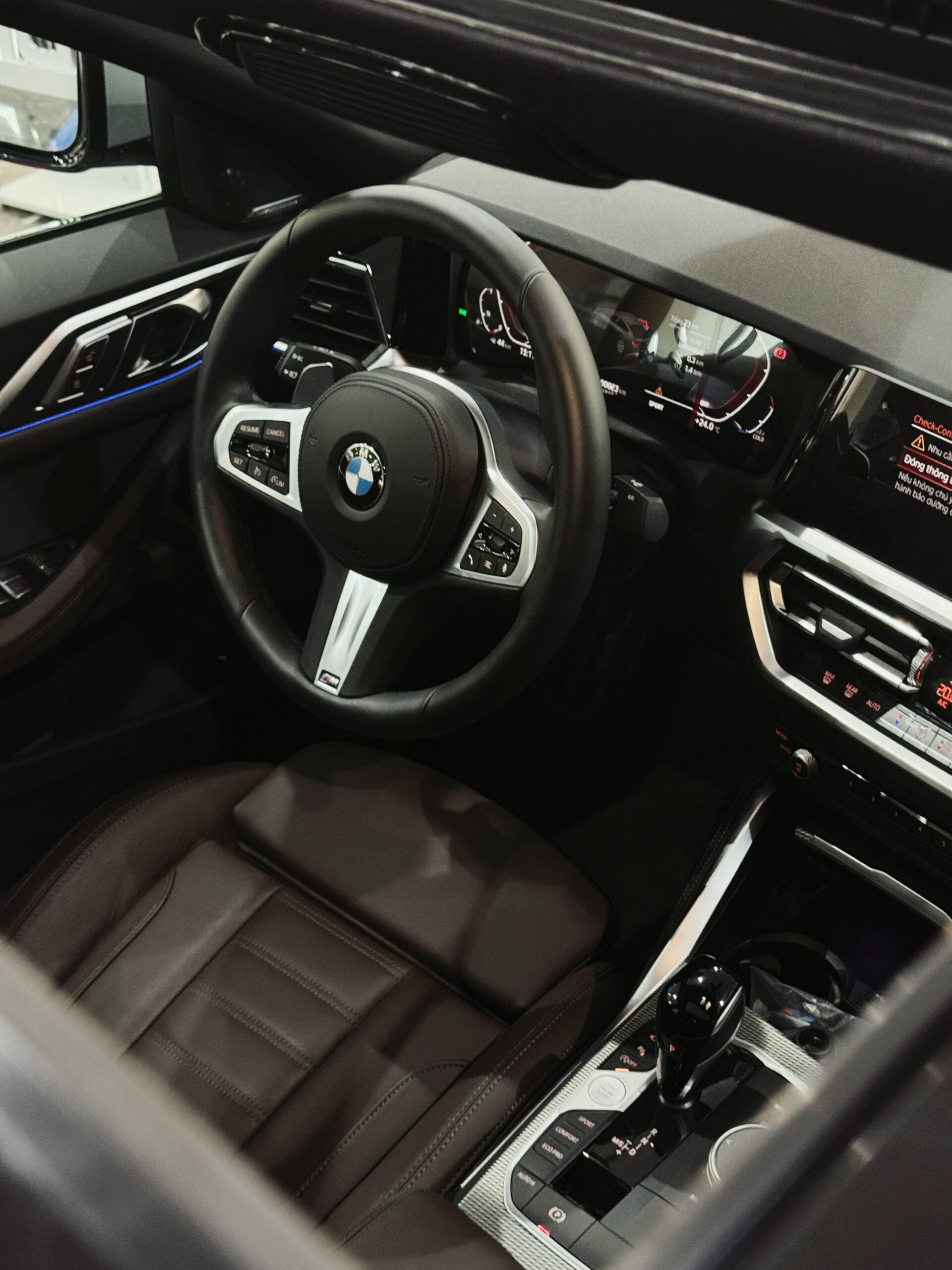 BMW 430i Gran Coupe với style nội thất BMW thế hệ G với nhiều option M Sport tăng tính thể thao. Khoang lái trung tâm nổi bật với vô lăng M Sport.