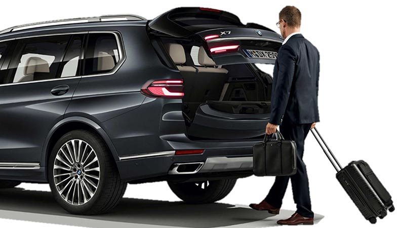 Cửa sau của X7 mở làm 2 phần (đóng/ mở hoàn toàn bằng điện); Giúp dễ dàng trượt đồ đạc vào khoang hành lý & không làm trầy xước cản sau; Có thêm không gian chuẩn bị đồ đạt & có thể ngồi được.