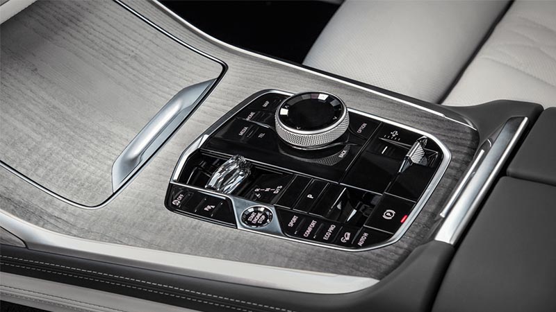 Các chi tiết nội thất được sử dụng vật liệu pha lê, mang đến trải nghiệm sang trọng, đẳng cấp (Núm xoay điều khiển iDrive, nút khởi động, Nút xoay điều chỉnh âm lượng).