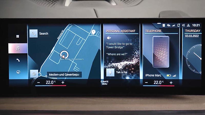 Cụm màn hình cong tràn viền: Màn hình đa thông tin sau vô lăng 12.3-inch, Màn hình cảm ứng trung tâm 14.9-inch, Màn hình hiển thị HUD trên kính chắn gió; Tính năng trợ lý ảo thông minh (“Hey BMW”)